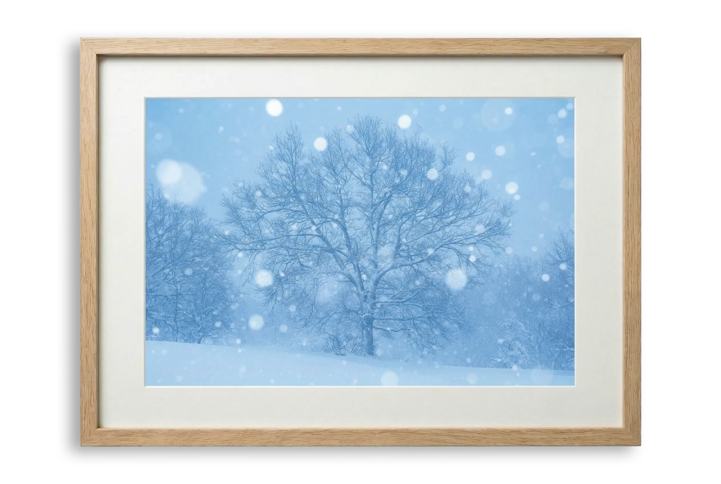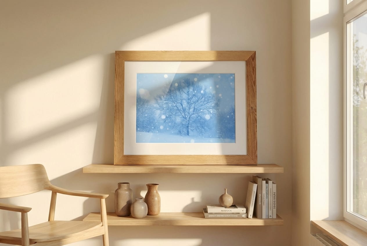 Finitura Perlata: La superficie ha un leggero riflesso satinato che dona all’immagine una lucentezza elegante, perfetta per esaltare i dettagli della neve e della luce invernale.